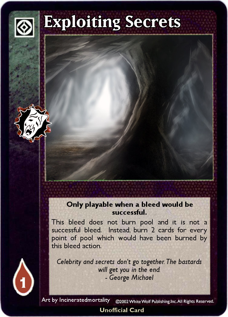 OP: why would you play this over Dirty Little Secrets? Trade the bleed total just to mill twice the cards and it costs a blood to boot? Even assuming it is free, it's worse than Dirty Little Secrets.